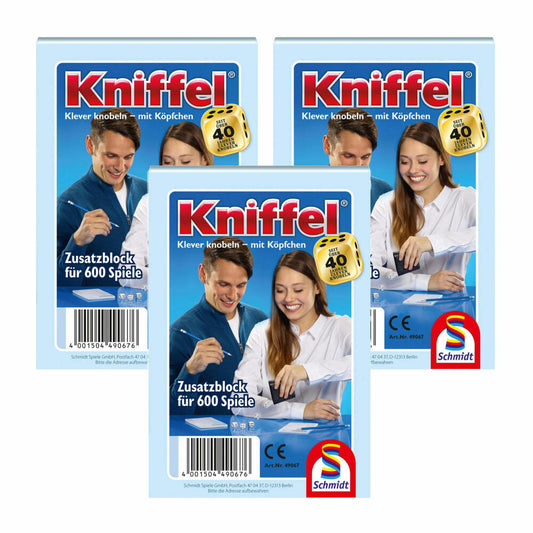 Schmidt Spiele Kniffelblock 3er Set, Zusatzblock, Familienspiel, Brettspiel, 2 bis 8 Spieler, 3 x 600 Spiele