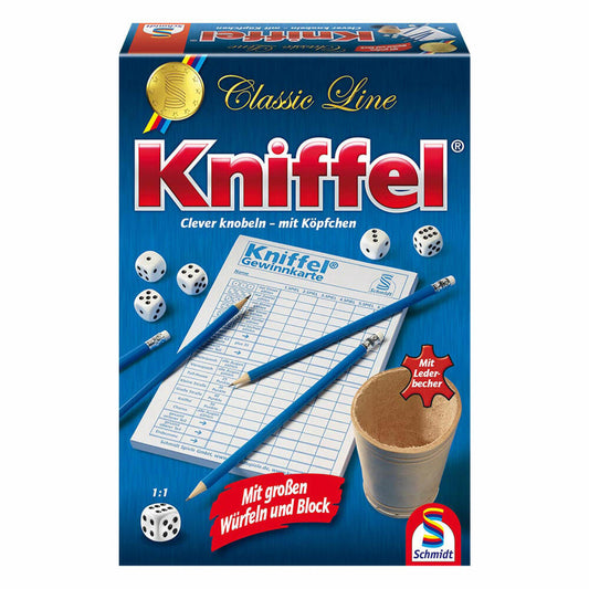 Schmidt Spiele Classic Line, Kniffel, mit großem Spielblock, Familienspiel - Classic Line, 2 bis 8 Spieler, 49203