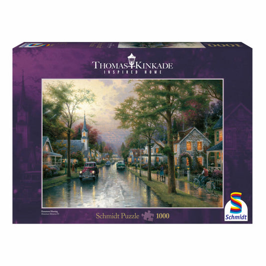 Schmidt Spiele Morgen in der kleinen Stadt, Puzzle, Erwachsenenpuzzle, Thomas Kinkade, 1000 Teile, 58441