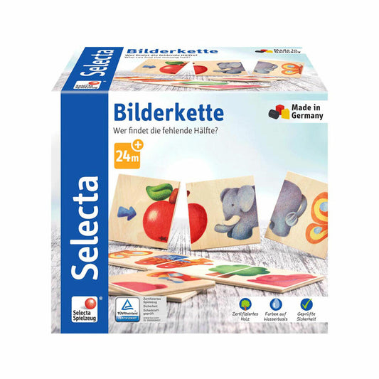 Selecta Spielzeug Bilderkette Legespiel, 8-tlg., Bilder Kette, Kleinkindspiel, Kleinkindspielzeug, Holz, 10 cm, 62006