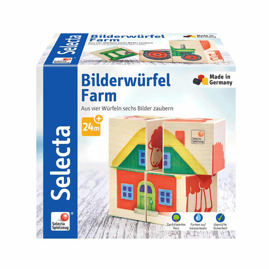 Selecta Spielzeug Bilderwürfel Farm, 4-tlg., Bilder Würfel, Kleinkindspiel, Kleinkindspielzeug, Holz, 9 cm, 62052