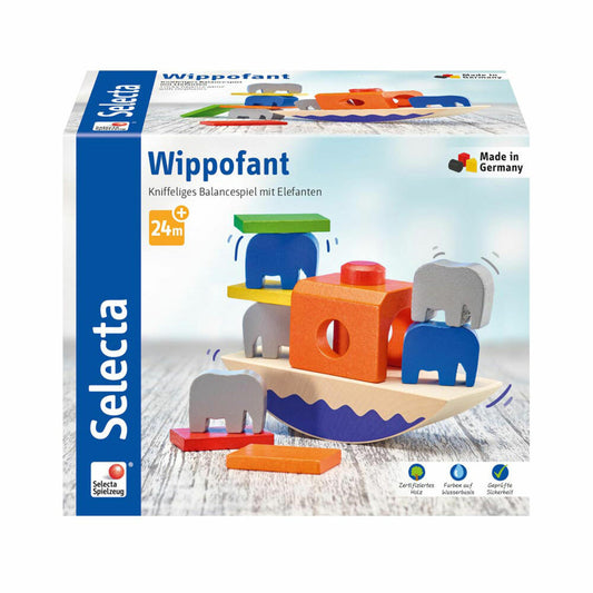 Selecta Spielzeug Wippofant, Motorik Spiel, Kleinkindspiel, Kleinkindspielzeug, Holz, 15.5 cm, 62012