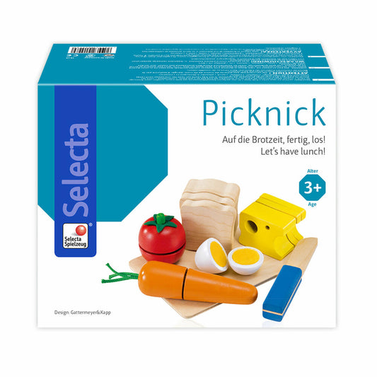 Selecta Spielzeug Picknick, 14-tlg., Motorik, Kleinkindspiel, Kleinkindspielzeug, Holz, 14 cm, 62020