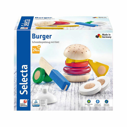 Selecta Spielzeug Burger, 12-tlg., Motorik, Kleinkindspiel, Kleinkindspielzeug, Holz, 17.5 cm, 62068
