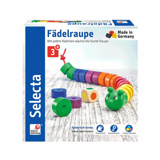 Selecta Spielzeug Fädelraupe, Fädel Spiel, Kinderspiel, Kinderspielzeug, Holz, 20 cm, 63005
