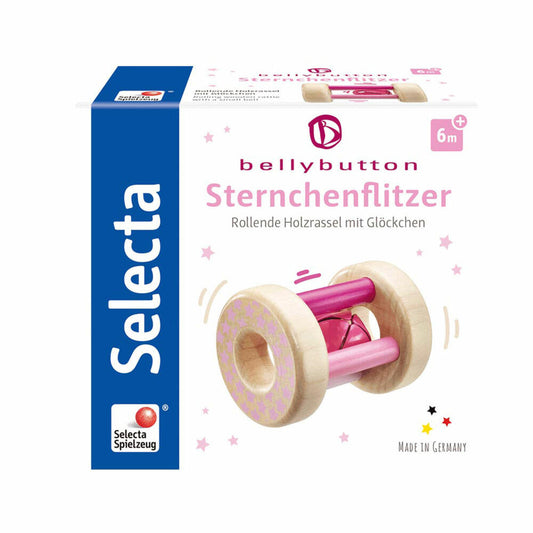Selecta Spielzeug Sternchenflitzer Rassel, Kleinkindspiel, Kleinkindspielzeug, Rosa, Holz, 7 cm, 64001