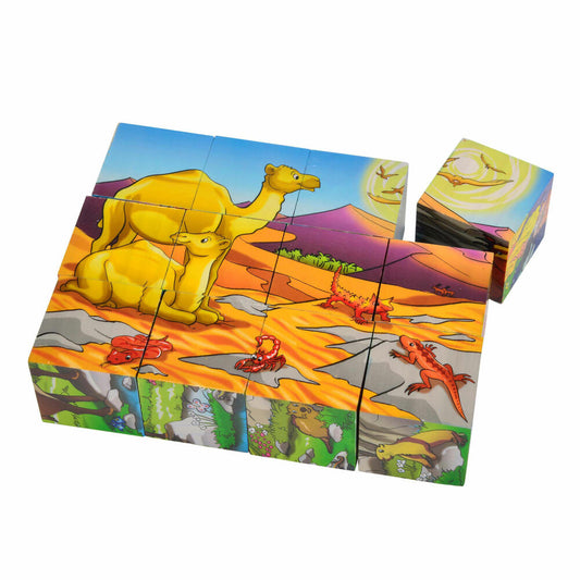 Eichhorn Bilderwürfel, Puzzle, Legewürfel, Würfelpuzzle, 6 Tiermotive, mit Vorlagen, Holz, 100005480