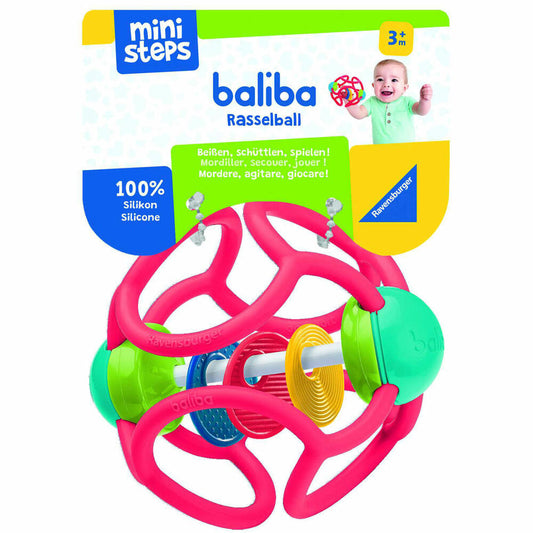 Ravensburger ministeps baliba Rasselball, Rassel Ball, Greifling, Beißball, Greifball, Beißhilfe, Spielzeug, Silikon, Rot, 04151