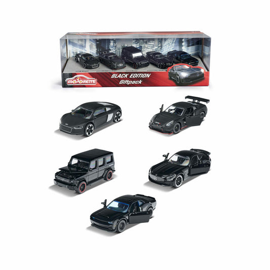Majorette Black Edition Geschenkset, 5er Set, Spielzeugauto, Spielzeug Auto, Dodge, Audi, Brabus, Schwarz, 212053174