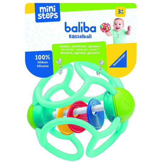 Ravensburger ministeps baliba Rasselball, Rassel Ball, Greifling, Beißball, Greifball, Beißhilfe, Spielzeug, Silikon, Türkis, 04152