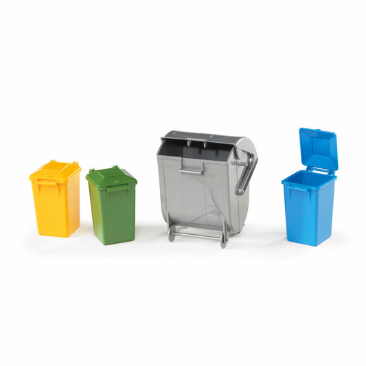 Bruder Nutzfahrzeuge Mülltonnen, 4er Set, für Müll-LKW, Müll Tonne, Zubehör, Spielzeug, 02607