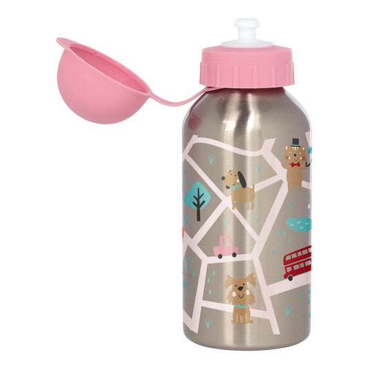 sigikid Trinkflasche Katze, Green Collection, Kindertrinkflasche, Kinder Flasche, Wasserflasche, Edelstahl, Rosa, 400 ml, 25141