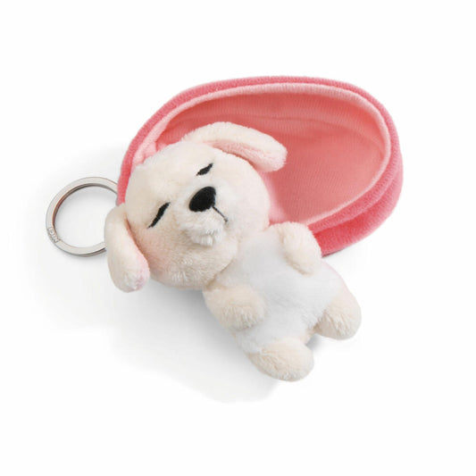 NICI Sleeping Pets Hund Schlüsselanhänger, Schlüssel Anhänger, Glücksbringer, Creme, 8 cm, 48834