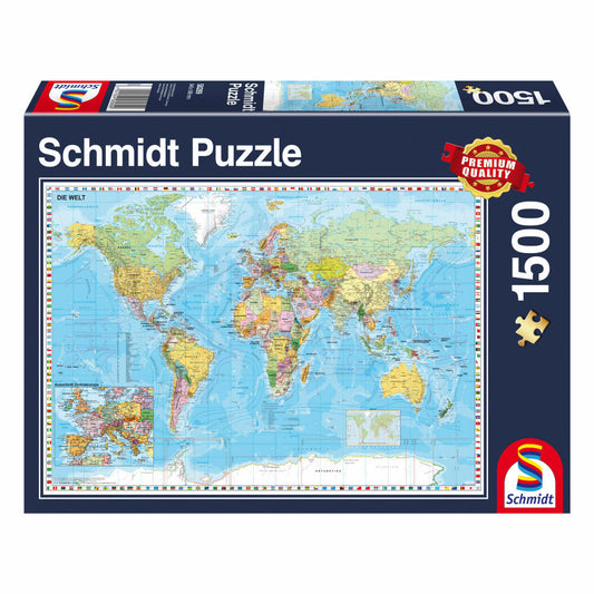 Schmidt Spiele Weltkarte Die Welt, Kartenpuzzle, 1500 Teile, Puzzle, Puzzlespiel, 58289
