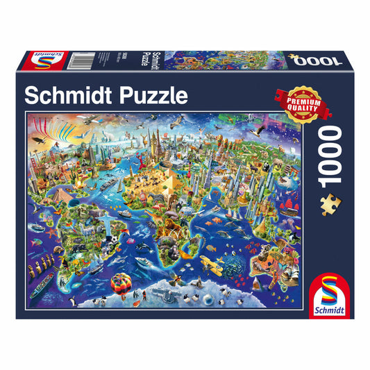 Schmidt Spiele Weltkarte Entdecke unsere Welt, Kartenpuzzle, 1000 Teile, Puzzle, Puzzlespiel, 58288