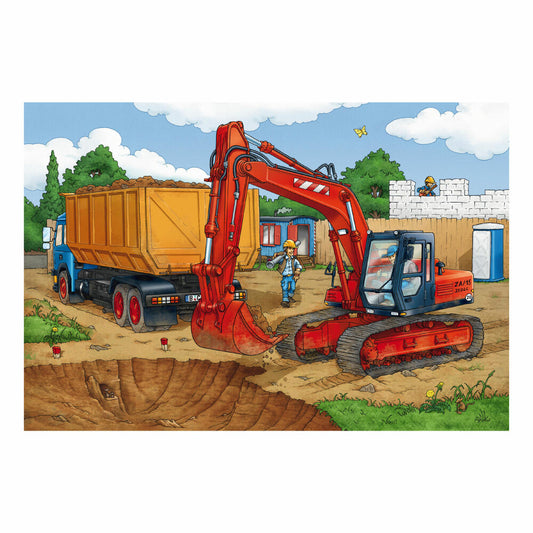 Schmidt Spiele Bagger Auf der Baustelle, Kinderpuzzle, 3 x 24 Teile, Puzzle, Puzzlespiel, Ab 3 Jahren, 56200