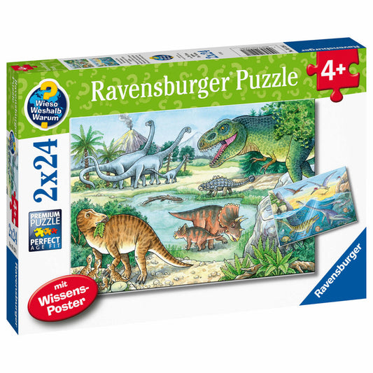 Ravensburger Puzzle Wieso Weshalb Warum Saurier und ihre Lebensräume, Kinderpuzzle, Legepsiel, 2 x 24 Teile, 05128