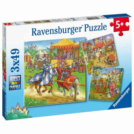 Ravensburger Puzzle Ritterturnier im Mittelalter, Kinderpuzzle, Legespiel, Kinderspiel, 3 x 49 Teile, 05150
