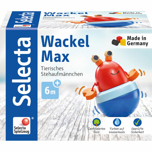 Selecta Babywelt Wackel Max, Stehaufmännchen, Stehauf Männchen, Spielzeug, Baby, Holz, 13 cm, 61066