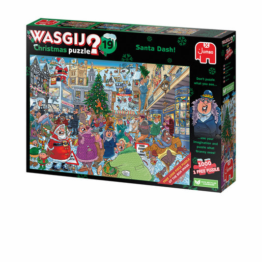 Jumbo Spiele Wasgij Christmas 19 Weihnachtsmann-Sprint!, Puzzle, Erwachsenenpuzzle, 2 x 1000 Teile, 1110100021