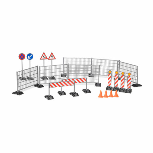 Bruder bworld accessories construction site set, 40 pcs., fences, signs, pylons, model, toy, 62007