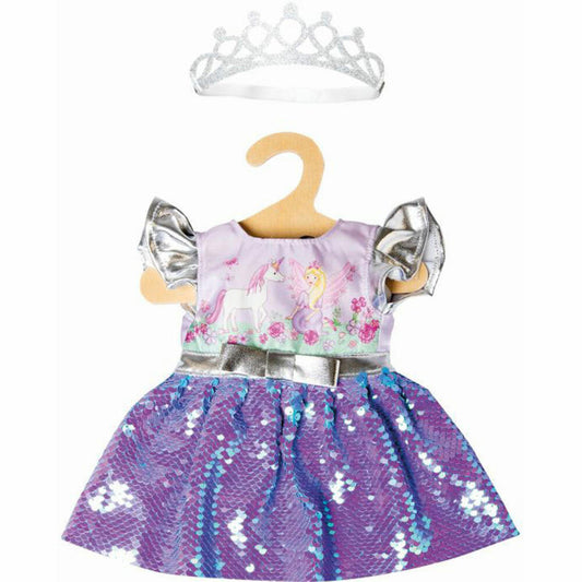 Heless doll dress fairy and unicorn with reversible sequins and silver crown, size 28-35 cm