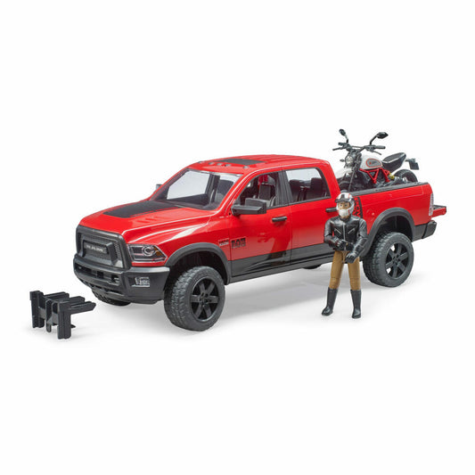 Bruder Leisure RAM 2500 Power Wagon, with Scrambler Ducati Desert Sled and Driver, Pick Up Truck, Motirrad, Model Vehicle, Model Vehicle, Toy, 02502