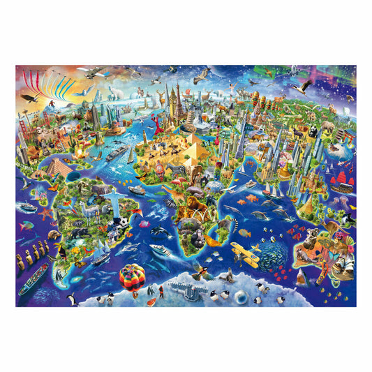 Schmidt Spiele World Map Discover our world, map puzzle, 1000 pieces, puzzle, puzzle game, 58288