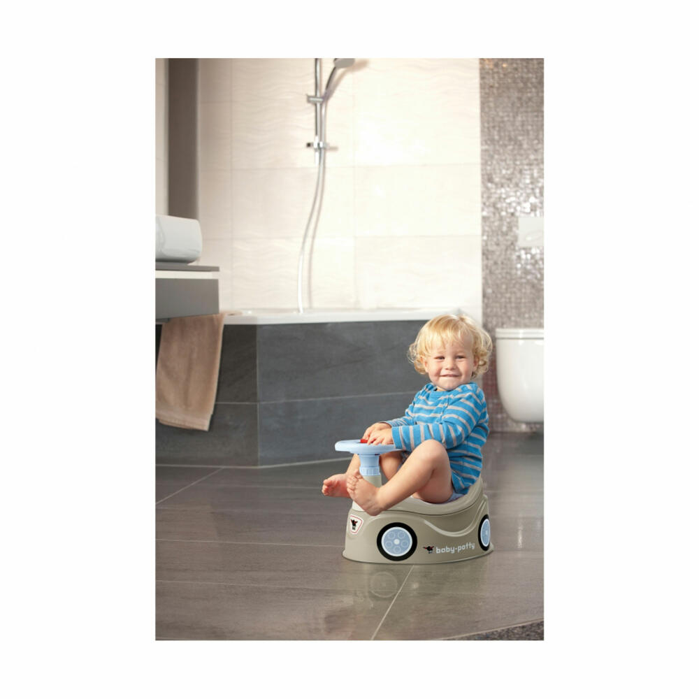 Since not all cars are created equal and not all potties are created equal, BIG has developed a real sports car among potties, which makes potty training really fun! The BIG Baby Potty with rotating steering wheel is a real magnet for small children due to its cool vehicle look and is available not only in the classic BIG Bobby Car red, but also in a modern grey with light blue colour elements.