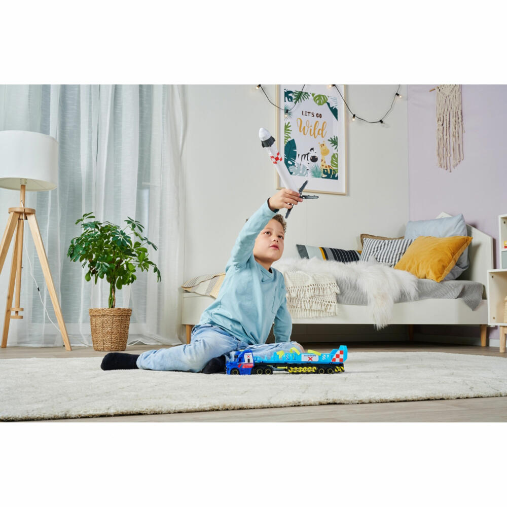 The large truck has a breathtaking and unusual load on its low loader. The large space rocket sets off on a journey to the next launch pad. Once it has reached its destination, the rocket needs to be set up and prepared for launch. A must for all space adventurers and junior astronauts - varied fun for all boys and girls aged 36 months and over.