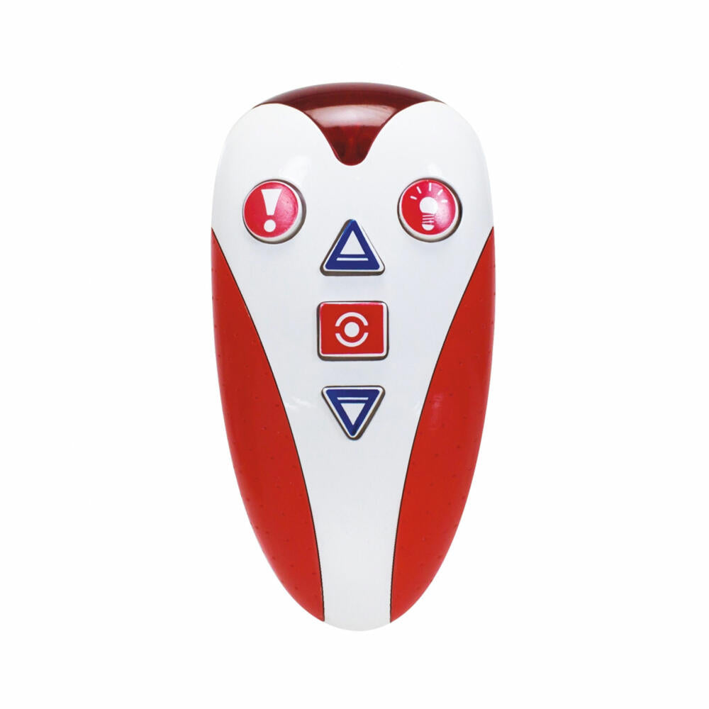 Eichhorn Railway, remote-controlled train: The modern remote-controlled train is operated with a hand-held transmitter and offers 5 functions: start, stop, forward, backward and different sounds. The train is 20.5cm long and can be moved on the Eichhorn railway tracks and many other wooden railway tracks. The train is supplied with 4x 1.5V LR06 batteries. Suitable for children aged 3 and over.