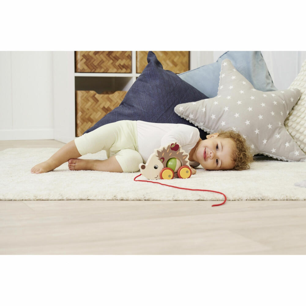 Eichhorn pull-along hedgehog: The cute pull-along hedgehog from Eichhorn is 16 cm long, is made of high-quality wood and promotes children's mobility. The hedgehog has an integrated sound ball that also stimulates and trains auditory perception. The silicone tires are noiseless and leave no marks on floors or other surfaces. Only certified wood from sustainable forestry is used to make the pull-along hedgehog. The Eichhorn pull-along hedgehog is suitable for children from one year of age.