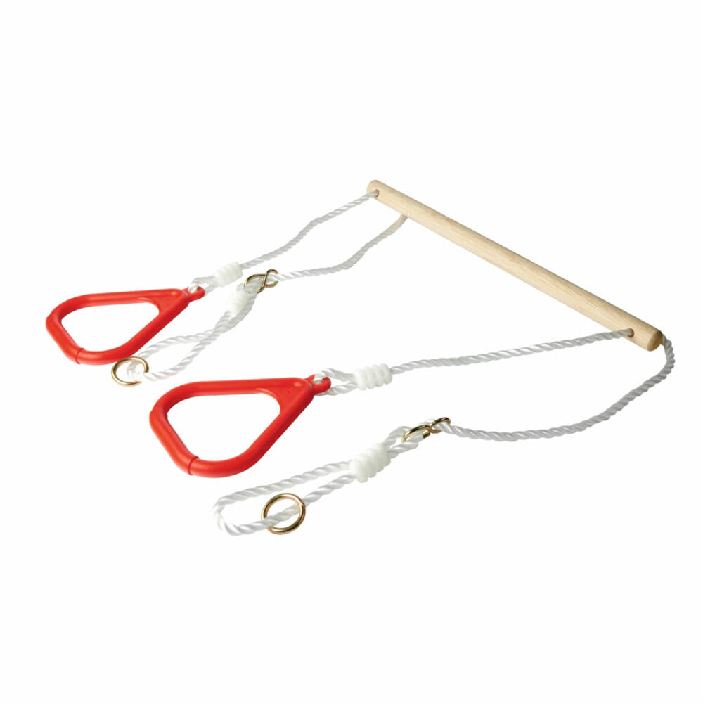 The Eichhorn gymnastics set is a swing and trapeze in one, making it the perfect play equipment for all climbing enthusiasts in any garden. The gymnastics equipment is made of hardwood and can be attached and hung up very quickly on any normal swing or tree. This means that the children can start climbing outdoors in a flash and enjoy the fresh air at the same time. It can also be individually adjusted to a height of approx. 110 - 160 cm and can support a load of up to 60 kg. The 48 cm long gymnastics swing provides lots of fun and entertainment for the little ones and is suitable for children aged 3 and over.