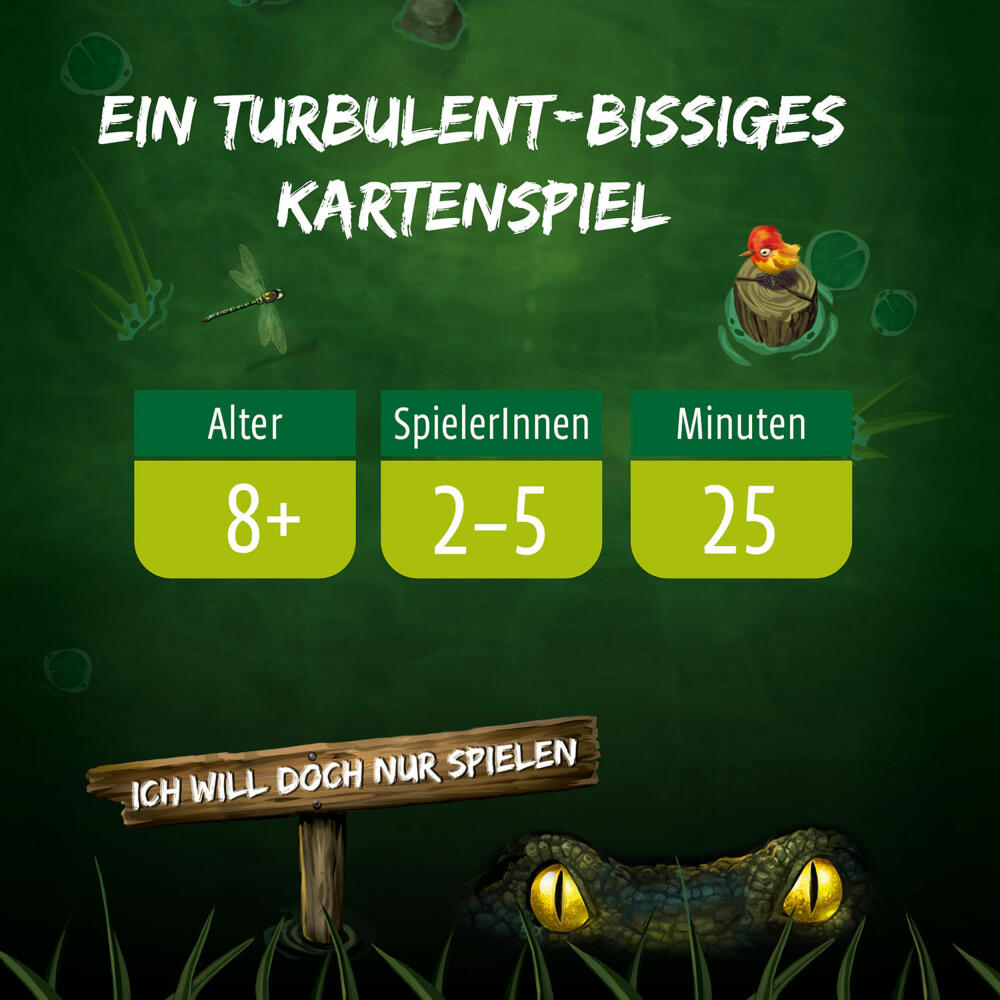 Watch out, Allie Gator is lurking! In this card game, players each have five cards in their hand. Each player takes turns to play one of them and draws a new card. It's very simple, but if you can't play a card, you get negative points. The fun special cards add an extra kick to the game. A fast-paced card game for everyone aged 8 and over. The game is perfect for on the go in the cool Open & Play magnet box. Fast, fun and with simple rules: a snappy and turbulent card game for the whole family.
