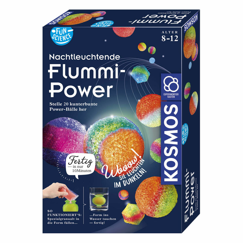 Which bouncy ball bounces the highest? Who has the prettiest bouncy ball? Children can find out in just ten minutes with this KOSMOS experiment set! With the special granulate and the various molds, 8 to 12-year-olds can mix together round and square bouncy balls in a variety of colors. The glow-in-the-dark bouncy ball is particularly cool because it glows brightly in the dark. If you then give it a pair of googly eyes, it gets really fun. If the first balls have dried out after a few days and lost their bounce, new ones are needed. It's a good thing that the granulate in this set is enough for up to 20 power balls! Exciting information texts and fun facts explain why some colors glow in the dark and how, for example, animals in the deep sea make use of this.