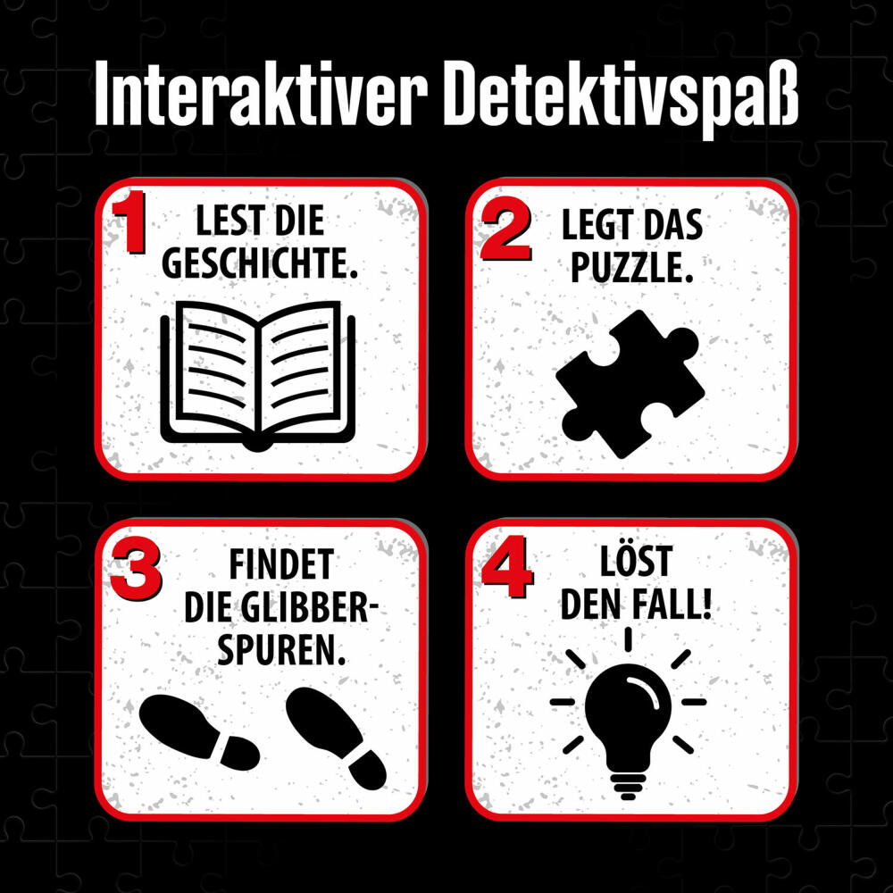 A slime monster in Rocky Beach? The investigation leads The Three Investigators to the monster house at the fair. Together with Justus Jonas, Peter Shaw and Bob Andrews, children aged seven and over immerse themselves in the exclusive short story. Solve an exciting case like a real detective! To do so, they put together the puzzle alone or as a team. What exactly happened? Who is a suspect? The crime scene appears piece by piece. Some clues are hidden in the hidden object picture and are not immediately visible. A great extra in the crime game: slimy slime powder that you can mix yourself, with a container for storage.