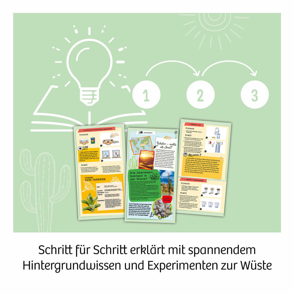 • The illustrated instructions lead you through great experiments on the subject of dew, evaporation and seepage and provide exciting knowledge about deserts and cacti.