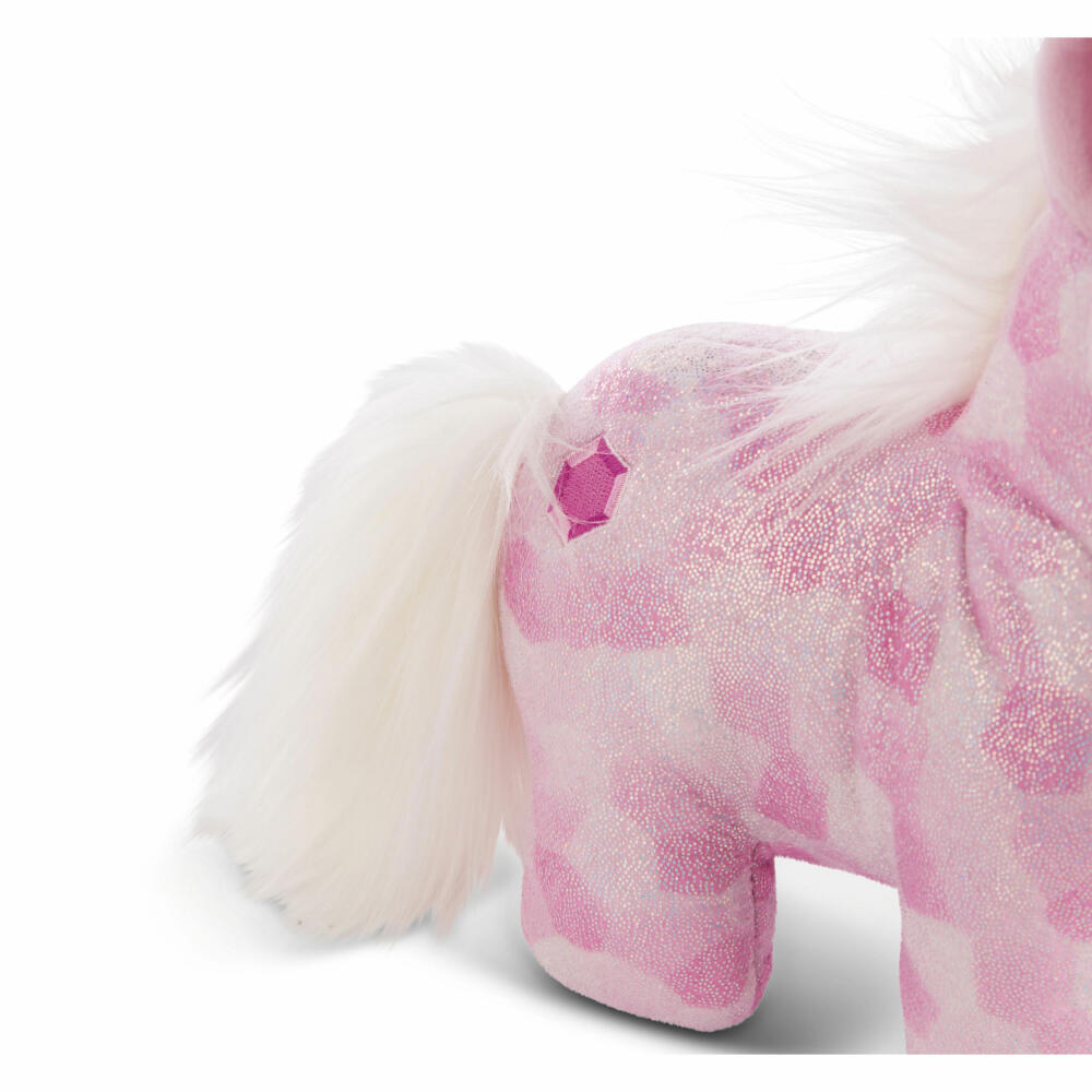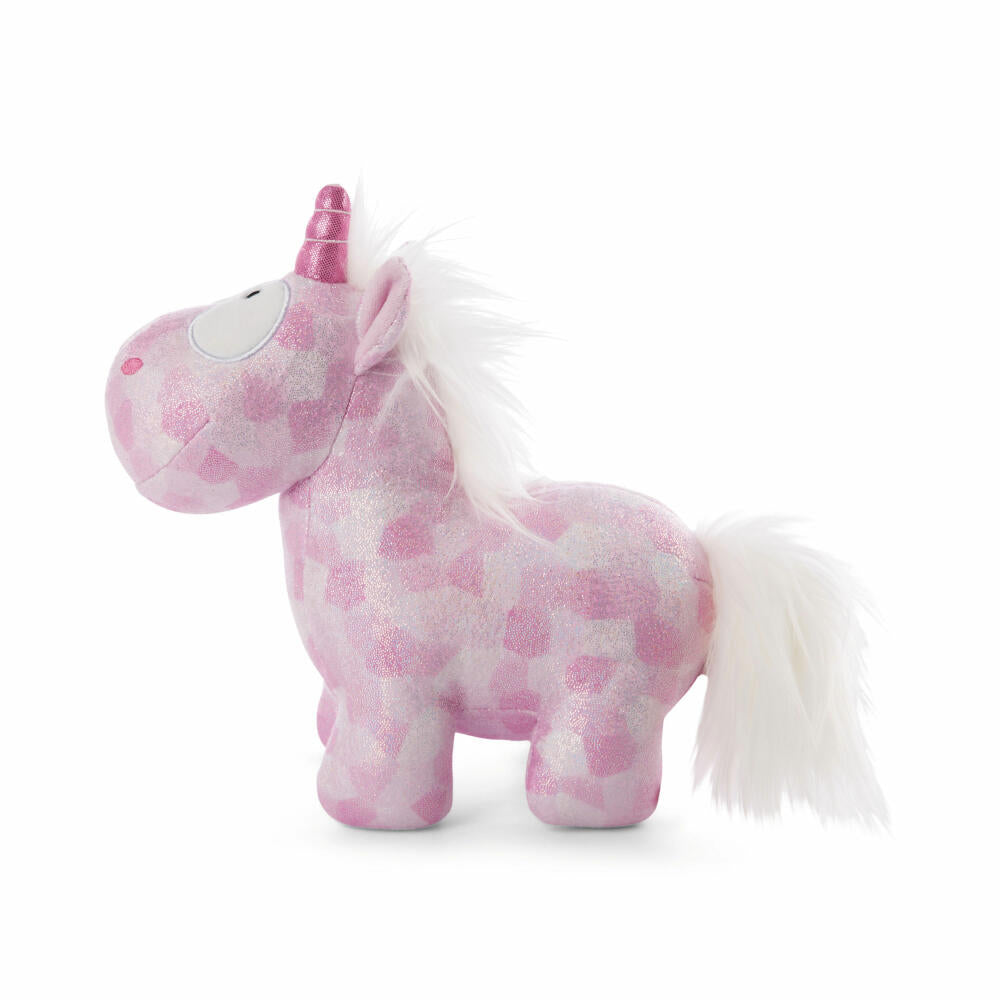 Pink Diamond brings sparkle to the magical unicorn world of Theodor & Friends by NICI and takes unicorn fans of all ages into the realm of magic. The pink unicorn Pink Diamond made of glittery plush with a white mane and tail looks absolutely enchanting with the shiny, pink unicorn on its forehead and elegant diamond embroidery on its back flank. The fluffy, soft plush material makes the 45 cm tall, standing unicorn Pink Diamond ideal for cuddling, dreaming and loving.