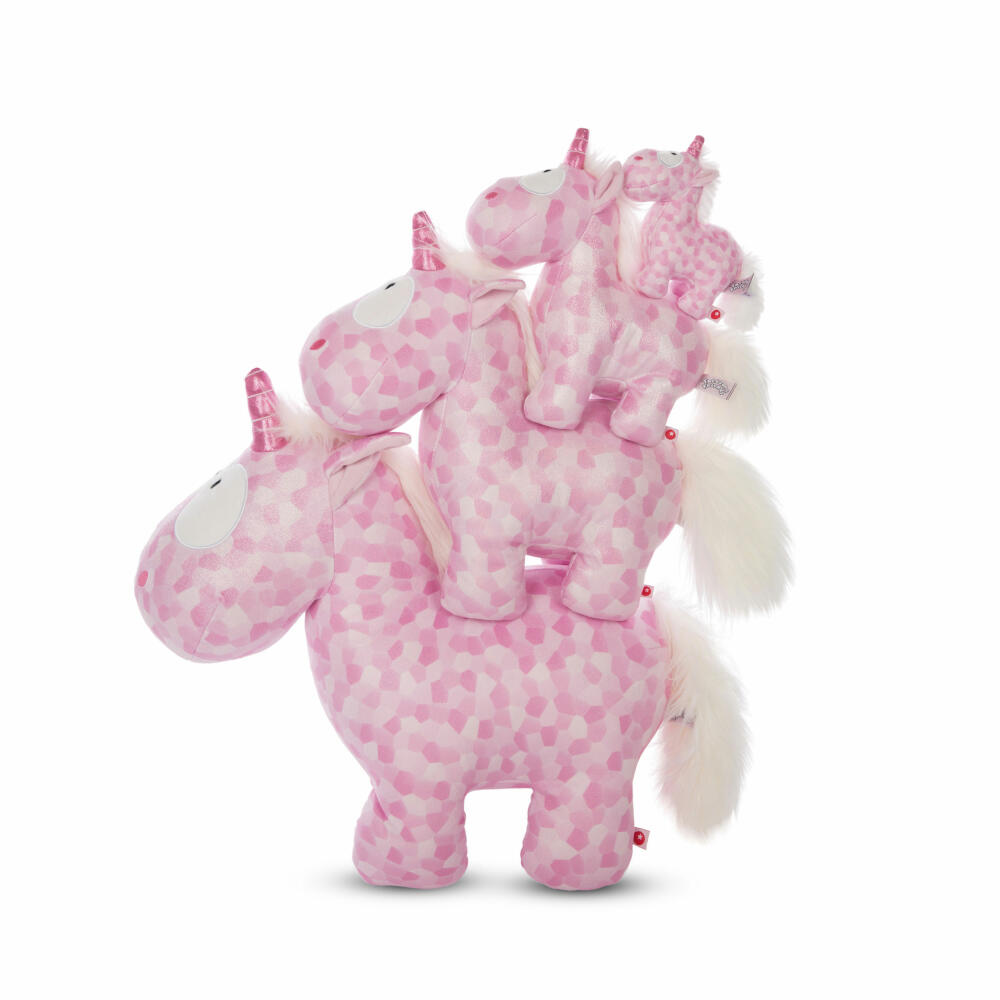 Shine, glamour and lots of unicorn love! The two new unicorns Pink Diamond and Diamond Dust bring shine to the magical unicorn world of Theodor & Friends from NICI and enchant you in a unique and particularly classy way. With glittering plush, a shiny unicorn on the forehead and an unusual diamond embroidery on the back flank, the new unicorns in pink and black-grey are delightful as fluffy plush friends and are simply perfect for cuddling, dreaming and loving. In addition, magically beautiful accessories and stylish decorative items are waiting for you.