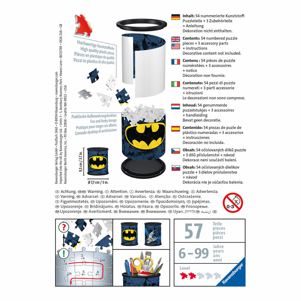 Ravensburger 3D Puzzle Utensilo Batman, 3D Puzzle, Children's Puzzle, Pencil Holder, 54 Pieces, 11275