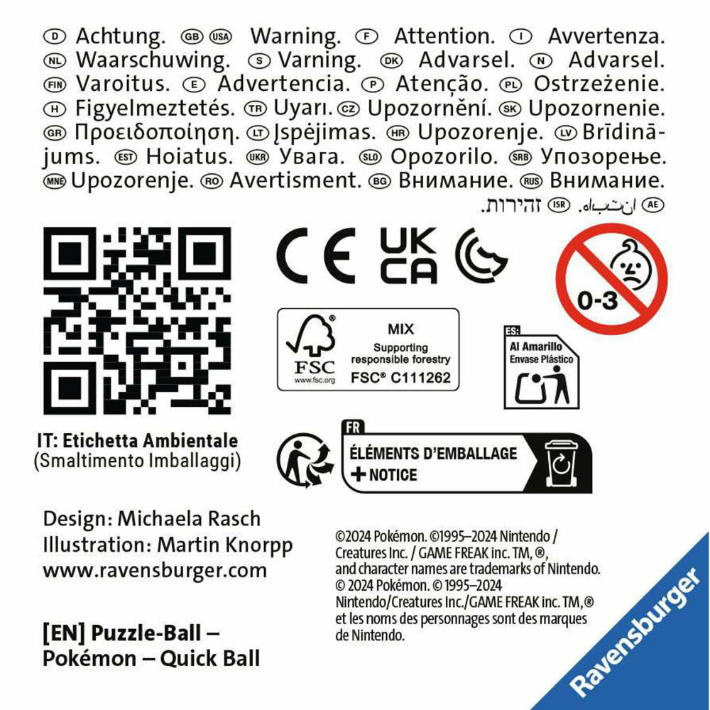 Attention Pokémon fans! The popular Pokémon Pokéballs are now available as a Ravensburger 3D Puzzle Ball! This means you can put together your own Pokéballs and bring them home straight away. Grab them all: In addition to the Speedball, there is also the classic Pokéball, the Hyperball, the Superball, the Masterball, the Netball and the Healing Ball as a 3D Puzzle Ball from Ravensburger.