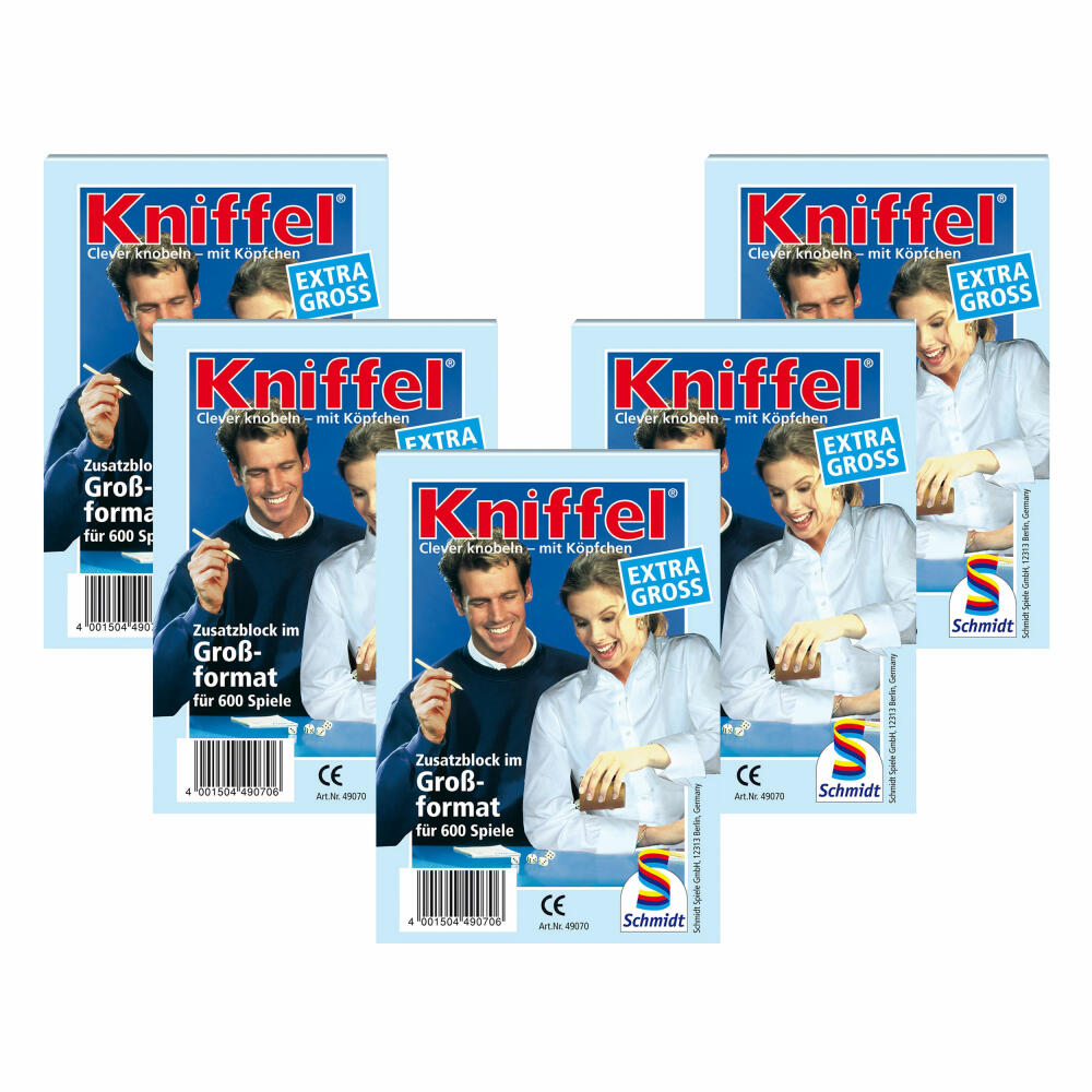 Schmidt Spiele Large Yahtzee Block Set of 5, Family Game, Board Game, Additional Block, 2 to 8 Players, 5 x 600 Games
