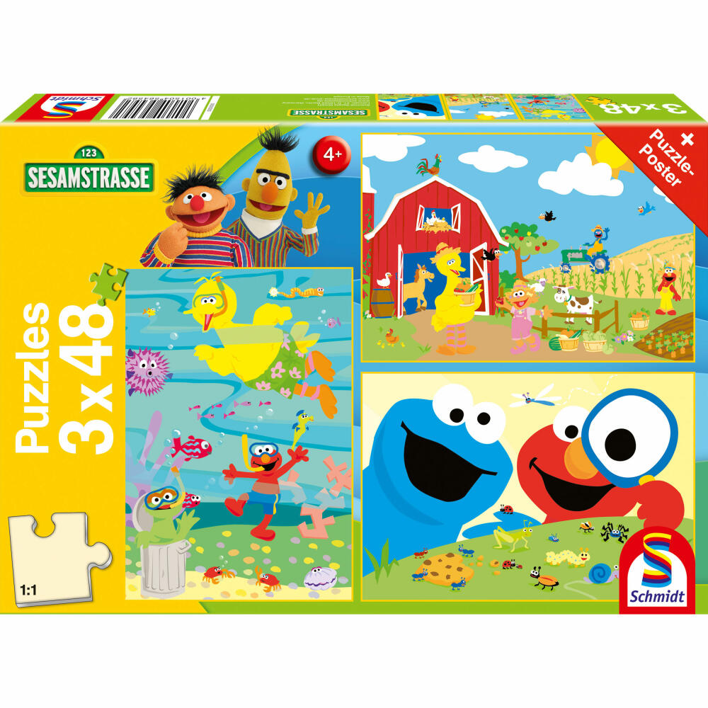 Schmidt Spiele Sesame Street Animally Strong, Children's Puzzle, Children's Puzzle, from 4 years, 3 x 48 pieces, 56458