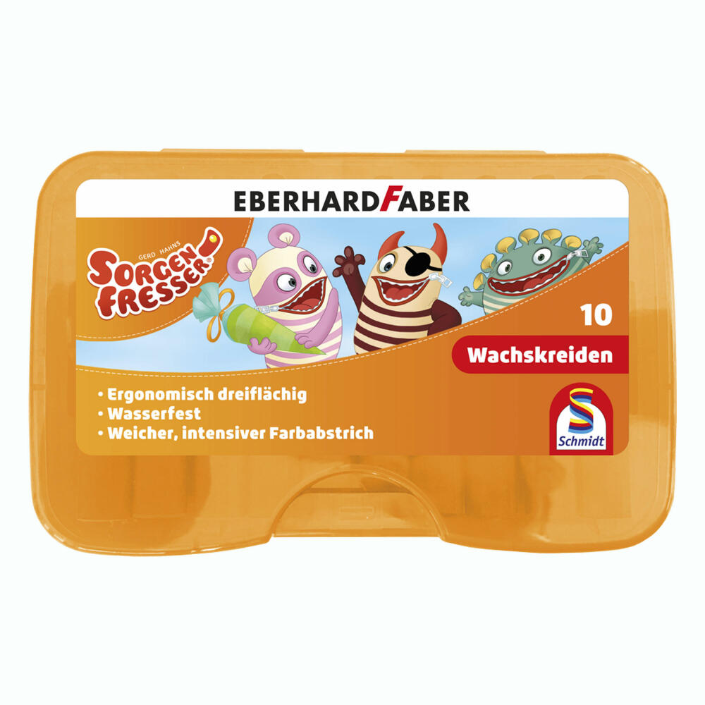 Schmidt Spiele Worry Eater Wax Crayons, Pencils, 10 Pieces, Three-Sided, Waterproof in Plastic Box, 46305