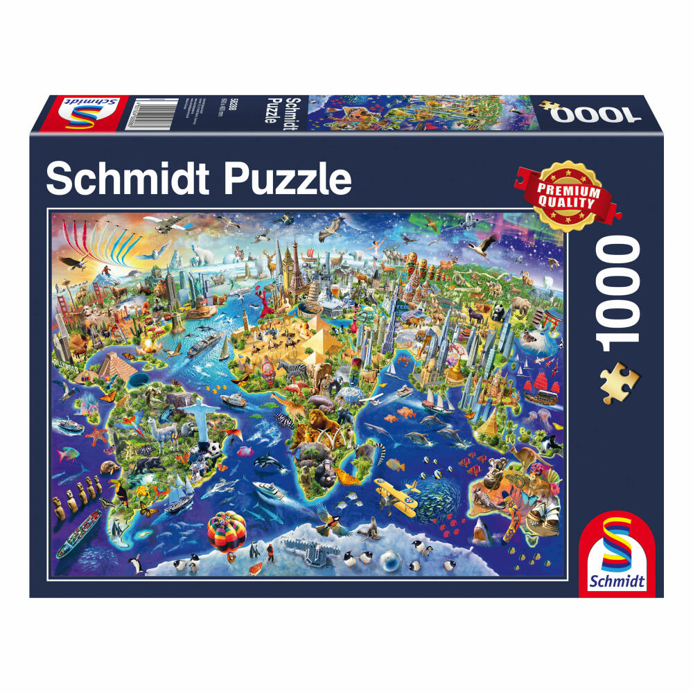 Schmidt Spiele World Map Discover our world, map puzzle, 1000 pieces, puzzle, puzzle game, 58288