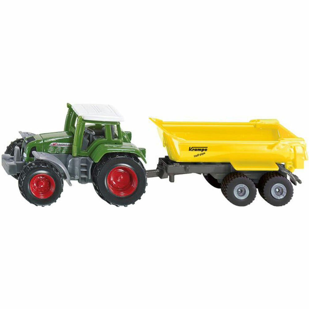 Detailed toy model of a Fendt 926 Vario tractor with dump truck from Krampe for playing and collecting, For small and large farming fans - Robust and stable design thanks to metal body, Very good rolling properties thanks to rubberized smooth-running wheels on the trailer, Removable cabin, Tiltable trough with movable flap, Trailer coupling - Ideal as a gift for children for birthdays, for example, or for in between, but also as decoration for adult birthdays or wedding gifts - Perfect for taking with you to save space, Long-lasting fun thanks to countless combination options within the siku play world - Scope of delivery: 1x siku 1605 Fendt tractor with Krampe dump truck, Material: metal/plastic, Dimensions: 16.0 x 3.8 x 4.2 cm, Weight: 0.0675 kg, Color: green/yellow, Series: SIKU SUPER