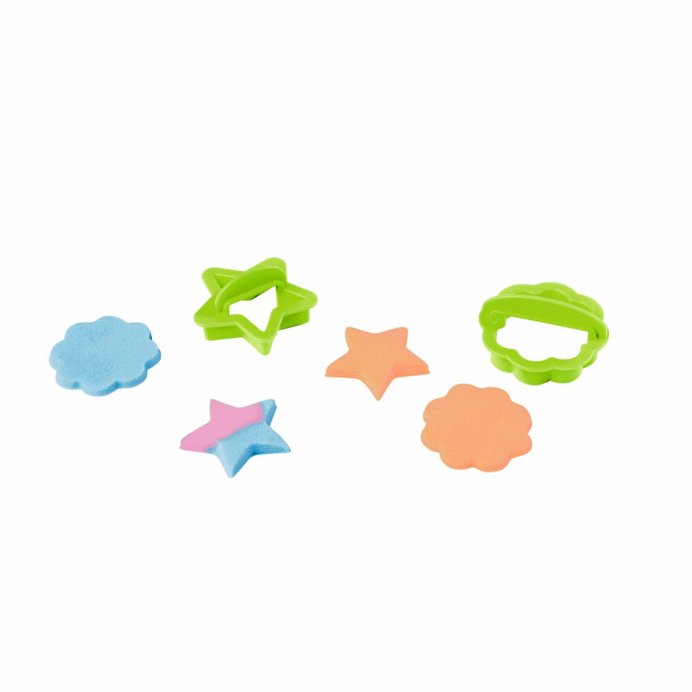 Colorful sand - in addition to the 3D mold, the set also contains 3x 200g play sand in the colors pink, blue and orange as well as a roller, stickers and two cookie cutters for creative design.