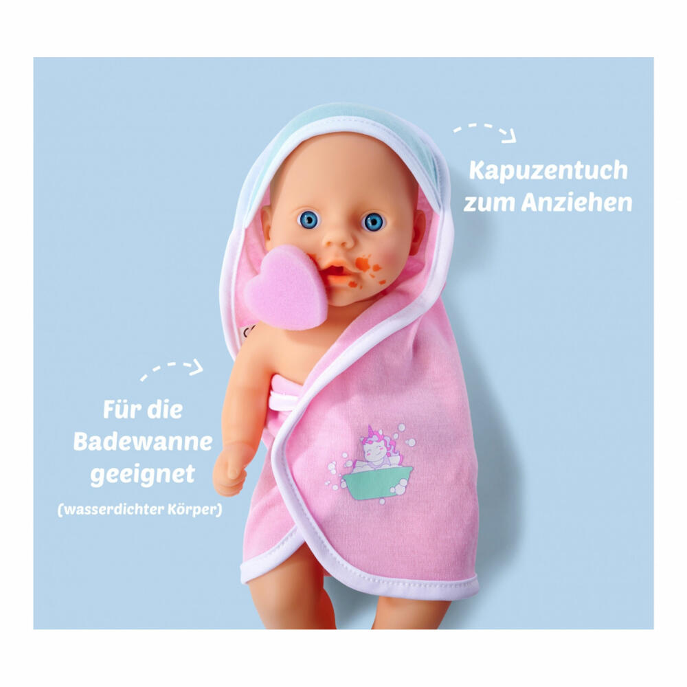 • With hooded towel - so that the doll is nice and warm after bathing and can be rubbed dry, the set also includes a hooded bath towel. A heart-shaped sponge for washing completes the set.