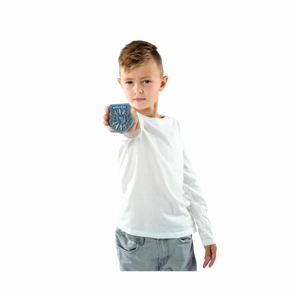 When little police officers go on patrol, they need the right equipment. With a belt, handcuffs, radio, pistol and pistol holster, every police officer is perfectly equipped. The belt is continuously adjustable from 40-80cm. Suitable for children from 3 years of age.