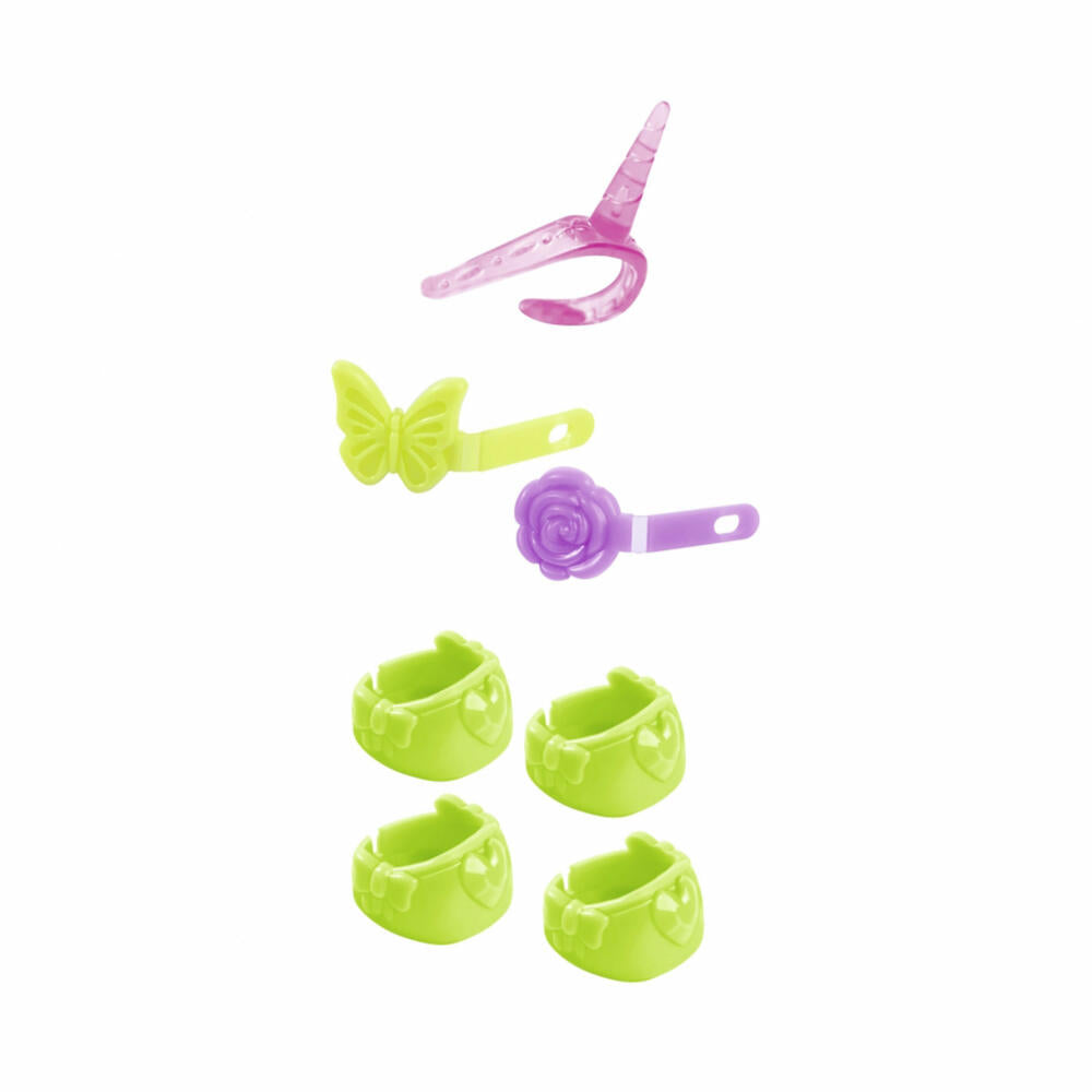 • Two ponies - The set includes an adult yellow pony and a pink foal. Both have a beautiful mane and a skirt with wings that can be attached.